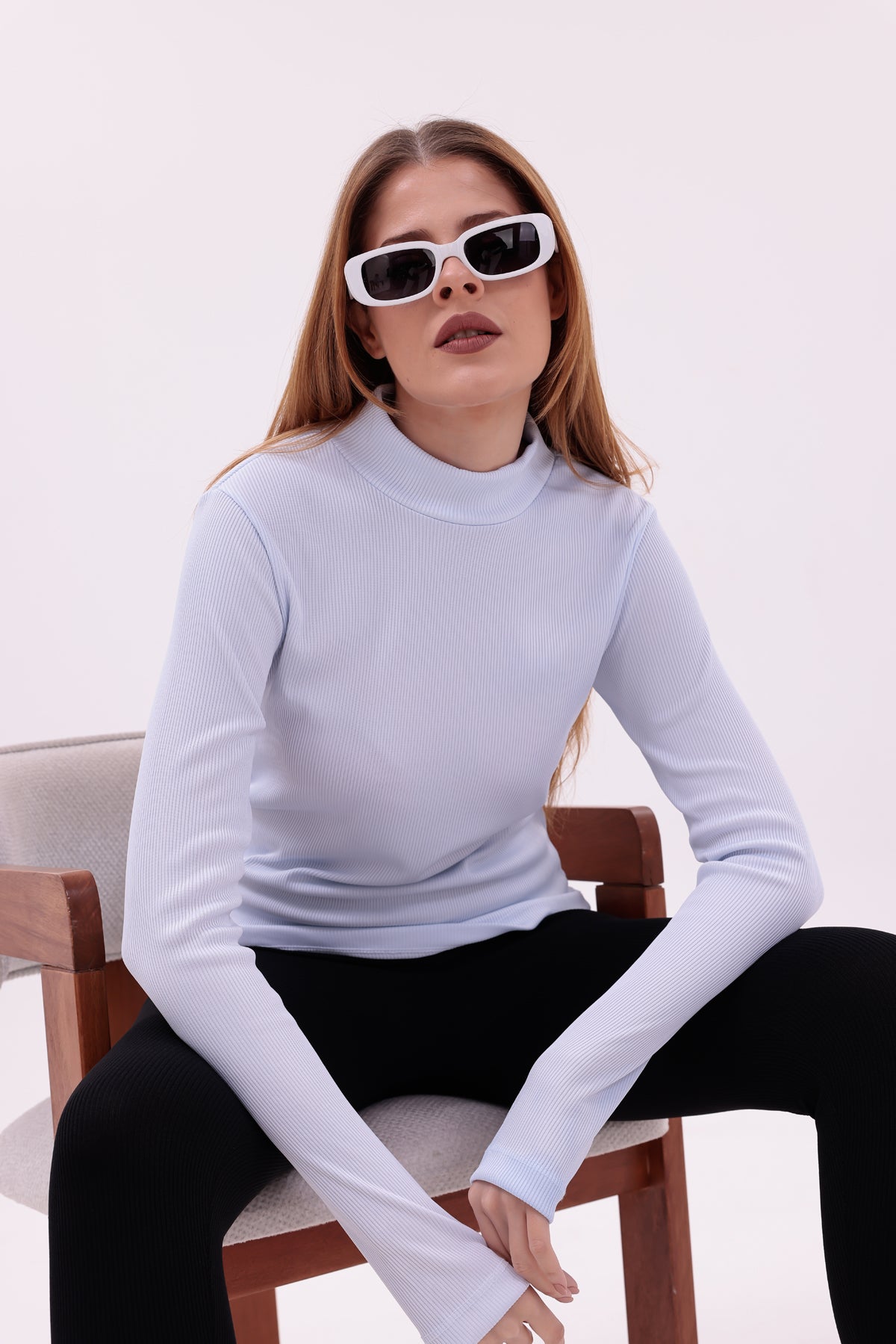 Yarım Balıkçı Yaka Parmak Detaylı Fit Body